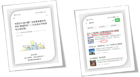高分子材料工程国家重点实验室、国家级实验教学示范中心每年接收优秀中学生参观学校学科的先进仪器设备,了解我院丰厚的历史文化底蕴和重大科研成果,让更多的学生喜欢上川大高分子,以成为川大学子为荣。