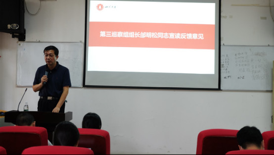 邰明松同志代表巡察组提出四点意见建议。一是要进一步提高政治站位,深入学习贯彻习近平新时代中国特色社会主义思想,推动“四个意识”“四个自信”和“两个维护”的知行合一,切实做好党的建设与事业发展两手抓、两手硬。二是要把全面从严治党主体责任落细落实落规范,领导班子成员要进一步强化“一岗双责”意识。三是要高度重视巡察反馈意见,针对指出的问题,要认真研究分析,高标准严要求处理,确保巡察反馈问题整改到位。四是要厘清学科建设逻辑、现状、问题、举措、目标,在学科方向凝练、高水平师资建设、体制机制改革、学科建设保障等方面集中发力,坚定决心在学校率先建成世界“一流”学科。