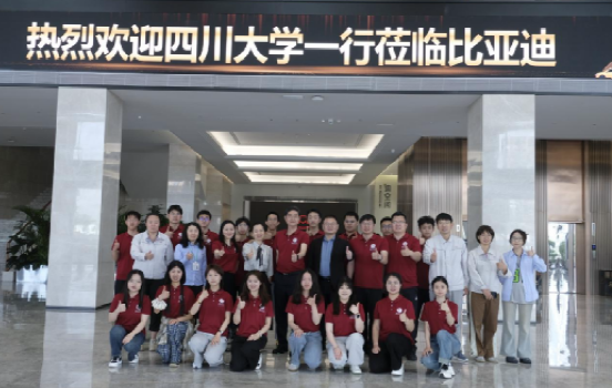 比亚迪股份有限公司是一家全球领先的新能源汽车及高新技术企业,公司业务横跨汽车、轨道交流、新能源和电子四大产业,是世界500强企业。在比亚迪股份有限公司深圳总部,师生参观了比亚迪技术展厅,了解了比亚迪旗下不同车型的研发技术与科技创新,深入探索了高分子材料在轻量化车身、动力电池隔膜、高性能复合材料等关键部件中的应用,近距离感受民族企业在新能源汽车与新材料领域的卓越成就。座谈会上,比亚迪集团招聘总监许云龙,电池事业群技术战略与创新业务部经理、我院03级本科校友朱燕,电池事业群CE与电极技术开发部经理、川大物理MG电子 校友王良俊,电池事业群技术战略与创新业务部副经理崔玮等公司代表就企业历史渊源、公司发展规划、人才引进政策、深化校企合作等方面展开了深入交流。