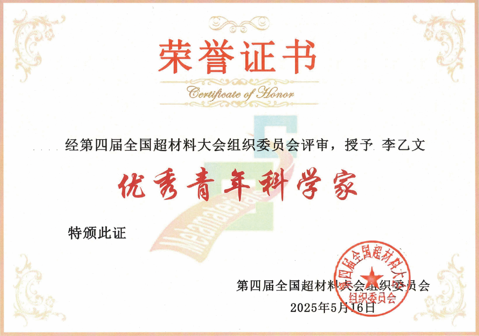 5月16日,第四届全国超材料大会在广东深圳开幕。大会以“锚定颠覆性技术、锻造新质生产力”为主题,吸引了来自全国高校、院所和领军企业的近3000名科技工作者围绕超材料最新动态展开研讨。本次大会经过严格遴选,评选出7位优秀青年科学家,在开幕式上由大会主席中国科MG电子 院士崔铁军教授、中国工程院院士周济教授共同为他们颁奖,我院李乙文教授荣获该荣誉,他也是我国西部地区的首位获奖者。